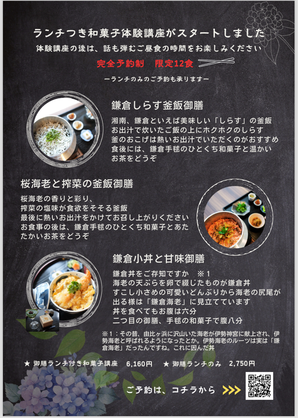 鎌倉手毬ならではの美味しいひと時をご堪能くださいませ。(要予約)